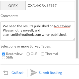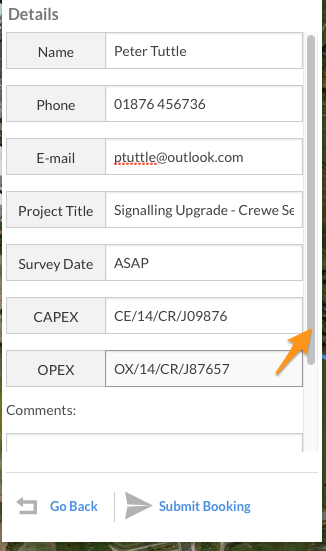 To complete the polygon, double click the last point added. This will open up the survey definition form to complete the booking.