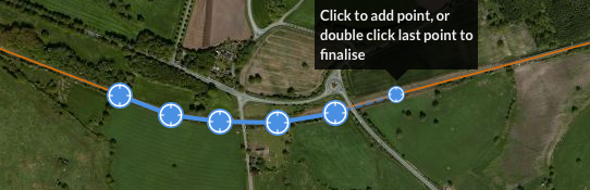 Simply double click the last point to complete the definition. This will open up the survey definition form to complete the booking.