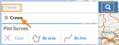 In the above example the user entered ‘crewe’ in the search box and clicked the magnifying glass. This listed all the known Crewe’s below the search box, so clicking on the desired result would then zoom the map and centre it on Crewe.