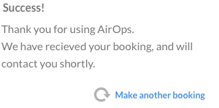 You should receive a confirmation email (sent to the email address you entered in the form), giving you the details of the booking. AirOps will also receive notification and will begin processing the request. They will contact you shortly to discuss the job.